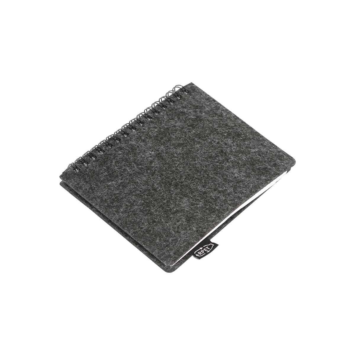 Descripción: Libreta ecológica con diseño de espiral y cubierta fabricada en fieltro RPET. Incluye 80 hojas, peso de 70 gramos. Hojas rayadas. Medidas: 11.5x1x14.5 cm.