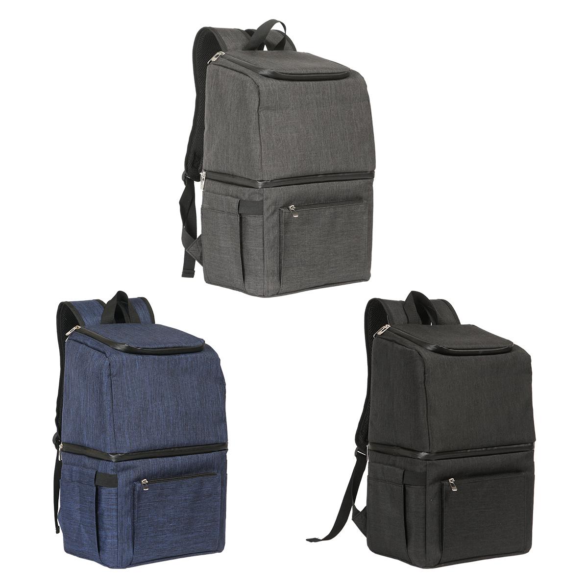 Descripción: Hielera tipo mochila fabricada en curpiel y PEVA (acetato de vinilio de polietileno). Incluye: Bolsillo frontal con cremallera, dos bolsillos laterales abiertos, bolsillo principal con cremallera y dos tiradores. Forro interior de PEVA, un bolsillo con cremallera en la parte superior, parte trasera de malla sándwich y un abridor de botellas en la correa trasera. Medidas: 45x29x20.5 cm.