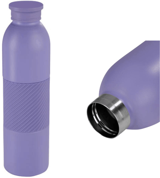 Descripción: Termo doble pared. Cerrado al vacío. Pared interna y externa acero inoxidable. Tapa de plástico con sistema de rosca. Incluye una manga de silicón texturizado, que le permite tener un mejor agarre. Mantiene la temperatura caliente por 10 hrs y la temperatura fría por 12 hrs. Capacidad de 20 Oz. Caja individual incluida. Material Acero Inoxidable. Medida 7 x 25.5 cm. Capacidad 590 ml