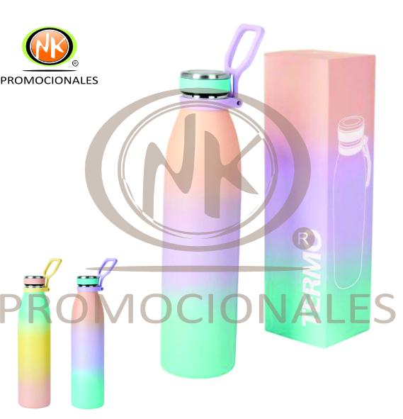 Descripción: Termo Promocional Doble pared. Cerrado al vacío. Pared interna y externa acero inoxidable. Terminado rugoso color degradado. Tapa de rosca. Cuenta con asa. Mantiene temperatura caliente 8 hrs y temperatura fría 12 hrs aproximadamente. Incluye caja individual.Material Acero Inoxidable / Plástico. Medida 7 x 28 cm. Capacidad 750 ml